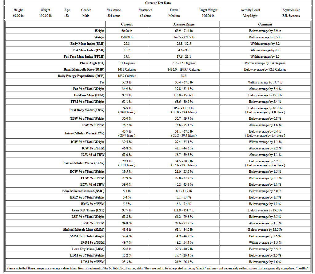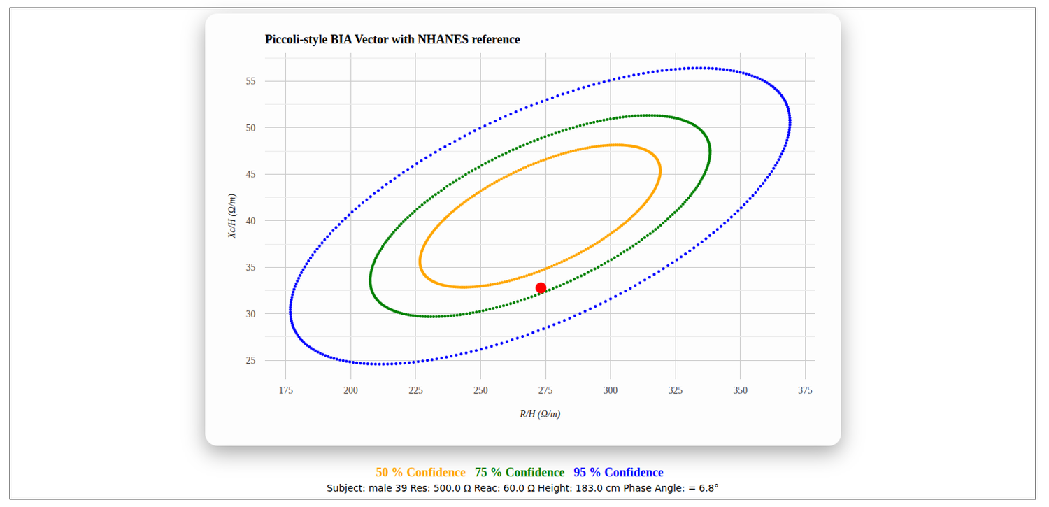 Free interactive body composition analysis featuring Piccoli style BIVA (BIA vector), a weight management tool and many graphs and charts to help illustrate good health practices using RJL Systems BIA instruments.